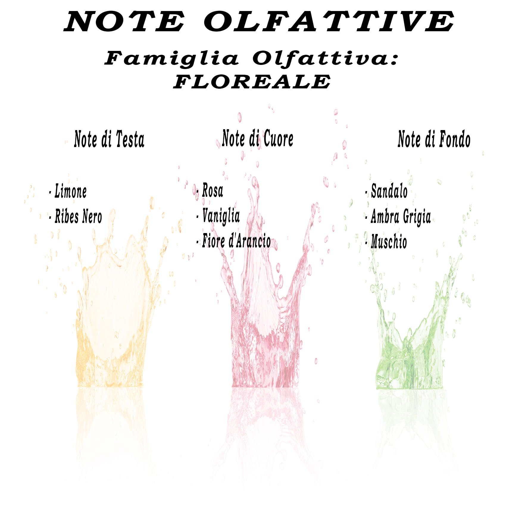 Un mix brillante di limone e ribes nero apre la fragranza con freschezza e vitalità. Il cuore di rosa, vaniglia e fiori d’arancio avvolge con dolcezza e raffinatezza, mentre la base di legno di sandalo, ambra e muschio crea un finale caldo e avvolgente. Perfetta per chi desidera un profumo sofisticato e femminile.