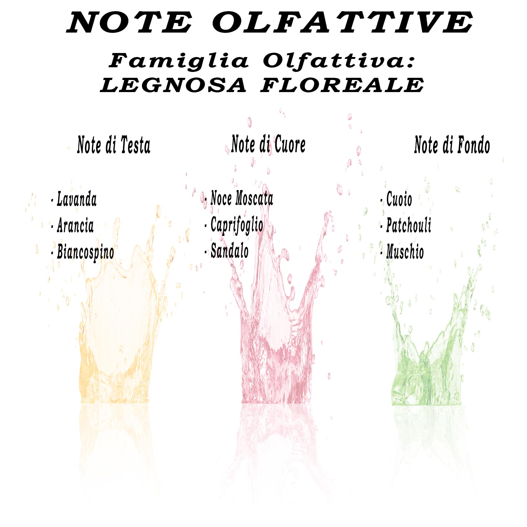Un inizio fresco di lavanda, arancia e biancospino che rinfresca i sensi con energia vibrante. Le note speziate di cannella, legno di agar e incenso creano un cuore intenso e avvolgente, mentre la base di tabacco, vaniglia e muschio definisce un carattere forte e raffinato. Una fragranza per l’uomo che ama distinguersi con eleganza.