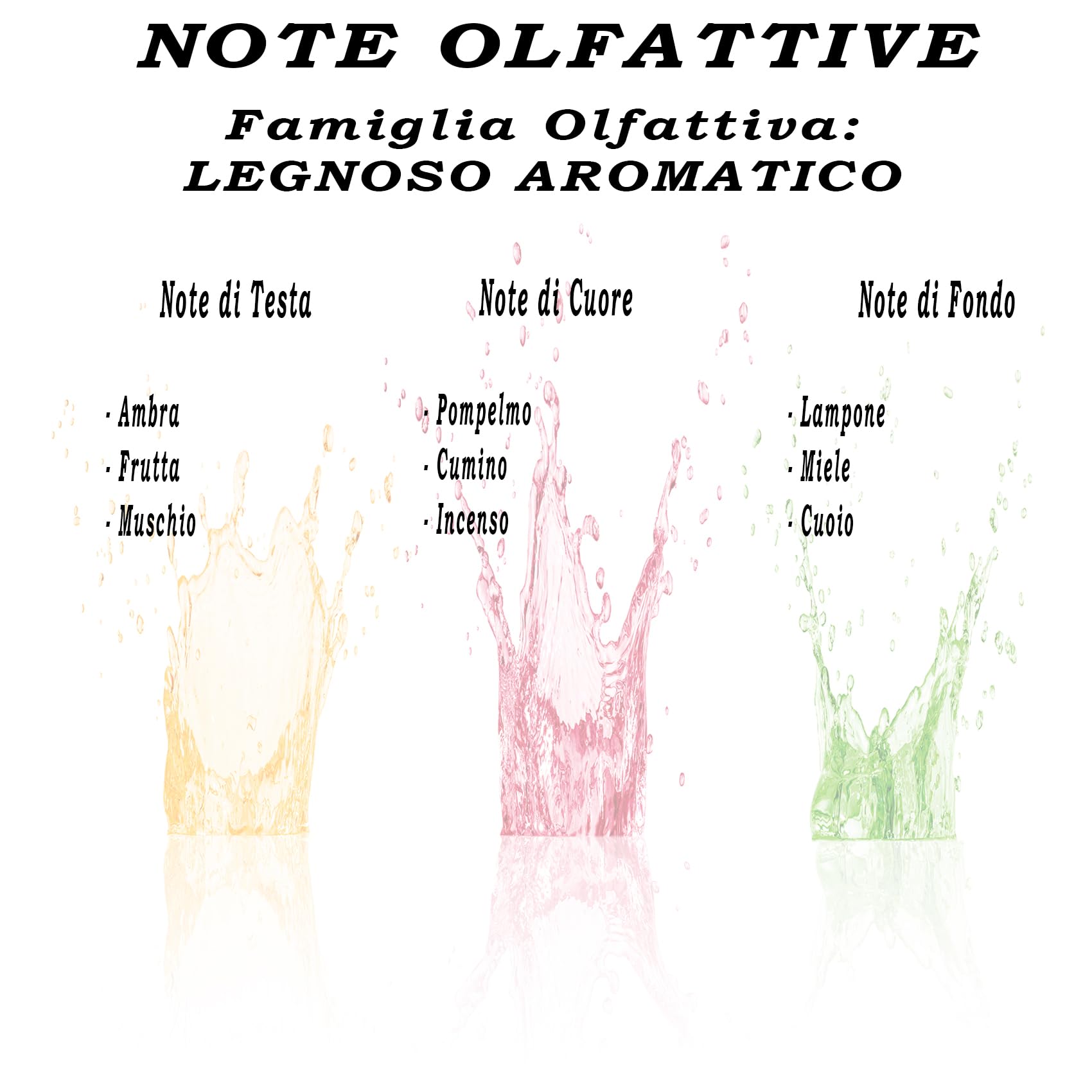 Un profumo profondo e magnetico che incarna mistero, forza e passione. AfGano Noir si apre con un blend deciso di ambra, muschio e note fruttate, che si dissolvono lentamente in un cuore speziato e avvolgente di cumino, pompelmo e incenso. La sua anima si svela nelle note di fondo con un accordo audace e persistente di lampone, miele e cuoio, per un sillage potente e inconfondibile. Una fragranza audace per l’uomo che ama distinguersi.