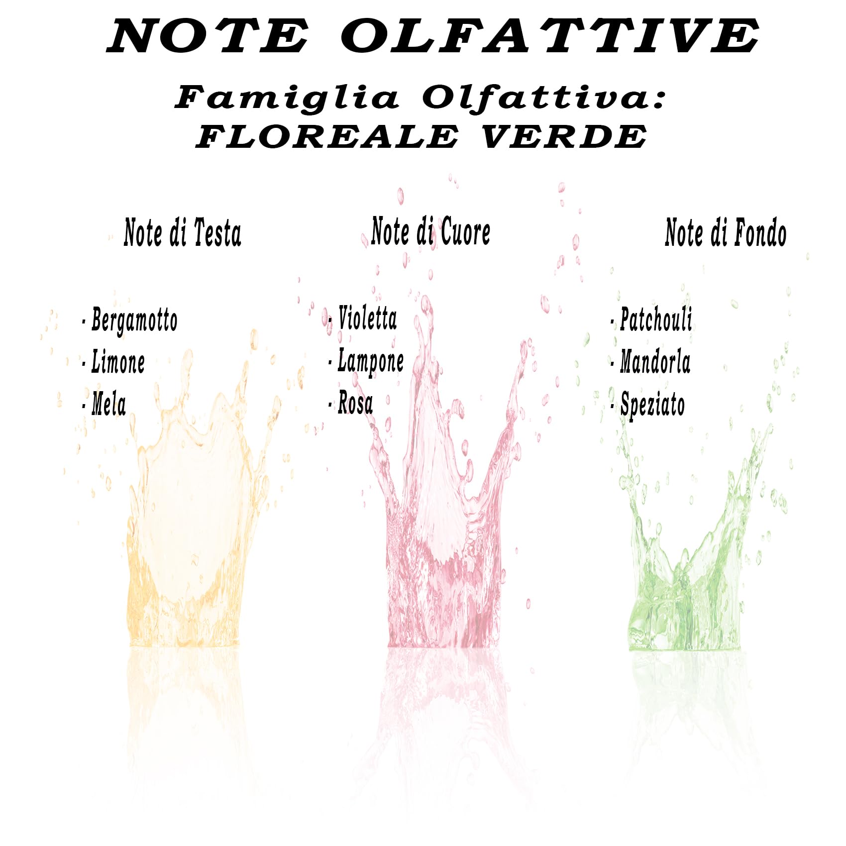 Nel cuore, la dolcezza vellutata della violetta, l’eleganza della rosa e la nota succosa di lampone disegnano una scia romantica, moderna, giocosa.