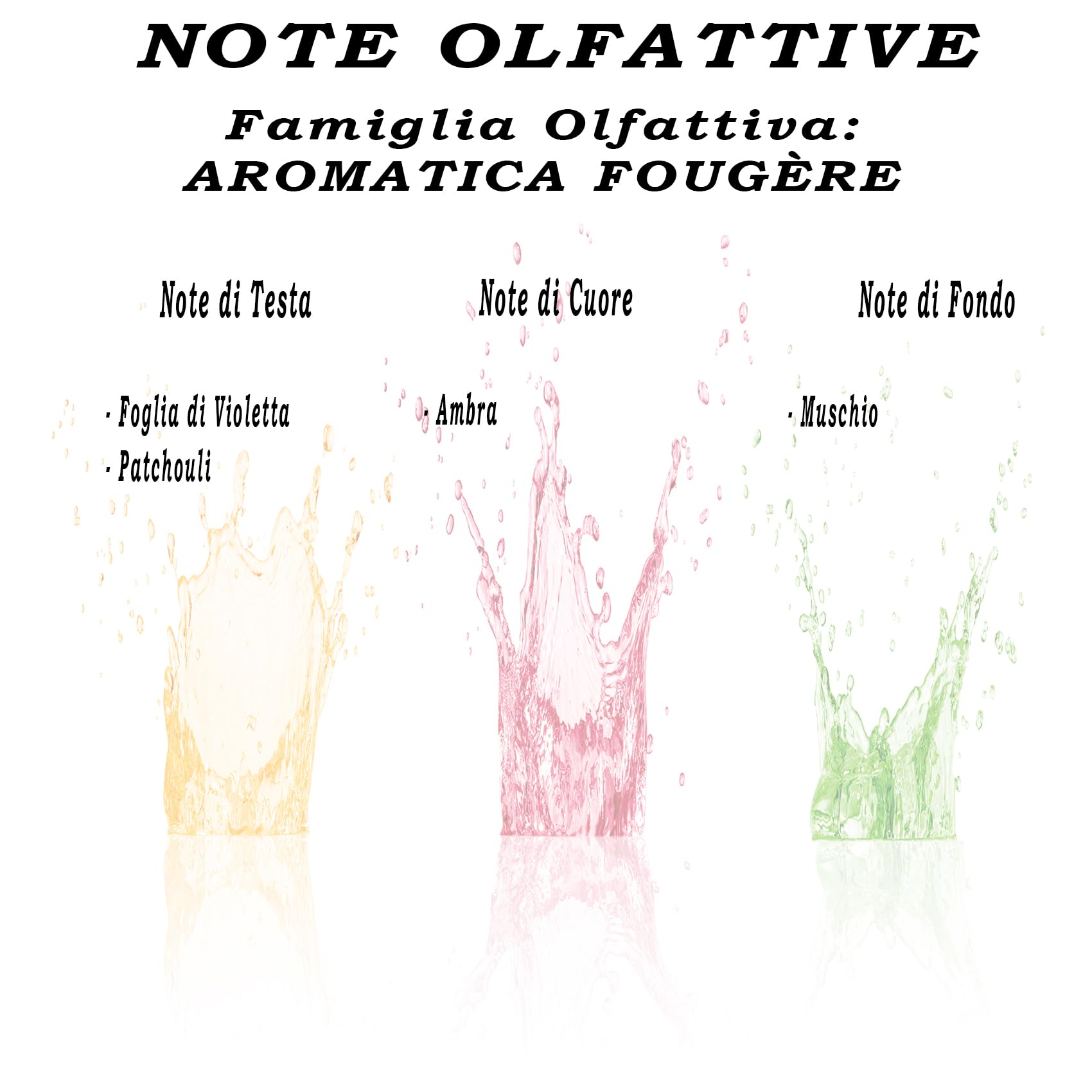 Una combinazione intrigante di foglia di violetta e patchouli che apre le porte a un mondo di mistero. Il cuore di ambra riscalda l’anima con le sue sfumature avvolgenti, mentre la base muschiata conferisce un carattere deciso e persistente. Un profumo per l’uomo che vuole lasciare un’impronta indelebile.